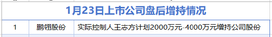 1月23日增减持汇总:国货航等6家公司拟减持 鹏翎股份增持(表)