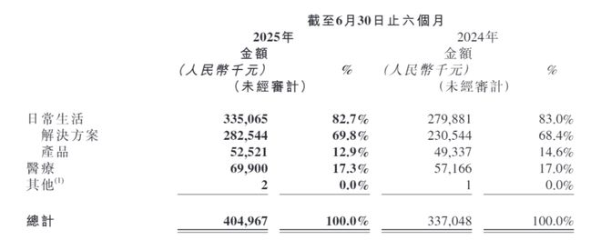 从1月27日收盘到1月29日收盘,云知声(09678.HK)的股价从219.8港元/股涨至392.6港元/股,两天涨 幅近80%。1月29日,盘中云知声一度涨至443.8港元/股,两天内最高涨幅超100%。 一天前(1月28日),云知声发布2025年度大模型相关业务收入业绩预告。其中提到,公司预期于2025 年内实现大模型相关业务收入约6.0亿元至6.2亿元。大模型相关业务收入相较2024年同比增长约1057% 至1095%。 在公告中,云知声提到,此番业绩增长的原因是大模型核心技术能力领先、商业化落地进程加速。 公开资料显示,云知声是一家AI解决方案提供商,主要销售日常生活及医疗场景的对话式AI产品及解 决方案。公司具备基础设施层、模型层和应用层的技术架构规划。其中,公司自研的山海大模型是云知 声提供一系列AI接解决方案的技术基础。 | | | 截至6月30日止六個月 | | | | --- | --- | --- | --- | --- | | | 2025年 | | 2024年 | | | | 金額 | | 金额 | | | | (人民幣千元) | 90 | (人民幣下工) | 96 | | | (未經 ...