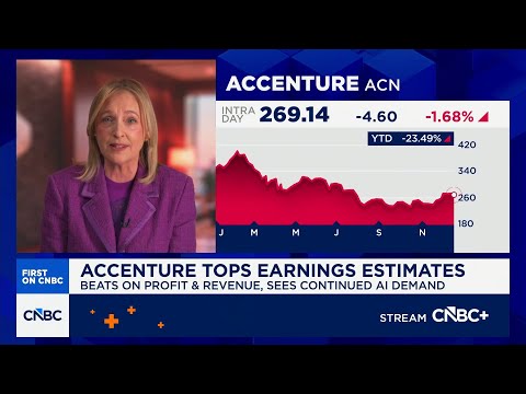 We're joined now by CEO [music] Julie to discuss the quarter and and we were just wondering about the stock reaction. Julie, the market doesn't appear to be believing that the AI narrative around Accenture even though it's clearly accelerating your business. What's happening.You know, Sarah, we delivered an incredible Q1, our biggest ever in new business, and it's because our clients know they have to deliver results today, and they've got to reinvent. So, we demonstrated that again, $20.9% billion in new b ...