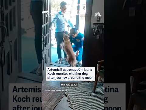 Artemis II astronaut Christina Koch reunites with her dog after journey around the moon