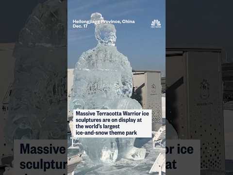 Massive Terracotta Warrior ice sculptures on display at the world's largest ice-and-snow theme park