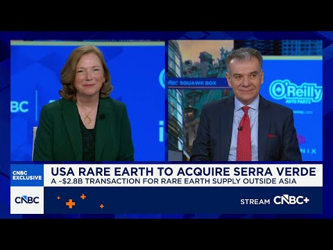 USA rare earth is buying rare earth's minor Sarah Verda this morning group uh in a $2.8% billion transaction. Joining us right now is Barbara Hson. She's the CEO of USA Rareear and uh Thras Mortis is CEO of Sarah Verde Group.Good morning to both of you. >> Thank you. >> Thanks for having us.>> This is a big deal. Uh we keep we you know we never talked about rare earths probably what two years ago, three years ago we wasn't really on the radar. the actual metals, >> the band we talked about in the 70s obviou ...
