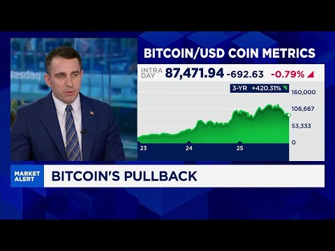 Let's look at Bitcoin prices this morning. Oh my god, there might not be another interest rate cut. Uh, better sell some Bitcoin.Um, there it is. Um, right now down 598 at 87. We'll talk about where it's been uh with Anthony Pompiano, founder uh and CEO.I was looking at Coinbase. Got as high as 300 back in 21. Then it went all the way down to 30. Then it got all the way up Anthony and then we'll get to coin uh to Bitcoin all the way up to almost 400 again.Now it's almost been cut in half again. very volat d ...