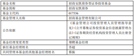 招商安凯债券增聘苏超