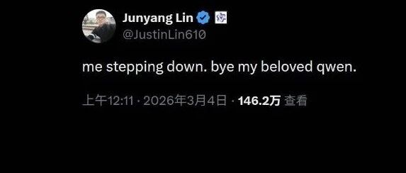 3 月 4 日 00:11,Qwen 大模型的技术负责人林俊旸突然在 X 上发文宣布卸任,引发行业热议。 不止 林俊旸,还有 多名核心贡献者也相继确认离开。 至于 Qwen 大模型团队到底出了什么事,这些当事人没有明说,不知道后面阿里会不会有回应。 截至目前,帖子已有 1000+ 留言。 在众多讨论中,有团队成员表示:"我真的心碎了。我知道离开并非你的本意。就在昨晚,我们还并肩发 布了 Qwen3.5 小型机型。说实话,我无法想象没有你的 Qwen 会是什么样子。" PS:据悉,1993 年出生的林俊旸是阿里最年轻的 P10 级别技术高管。2019 年北大硕士毕业入职阿里达摩院 (P6),2024 年 8 月升至 P9, 2025 年 5 月晋升 P10。 ...