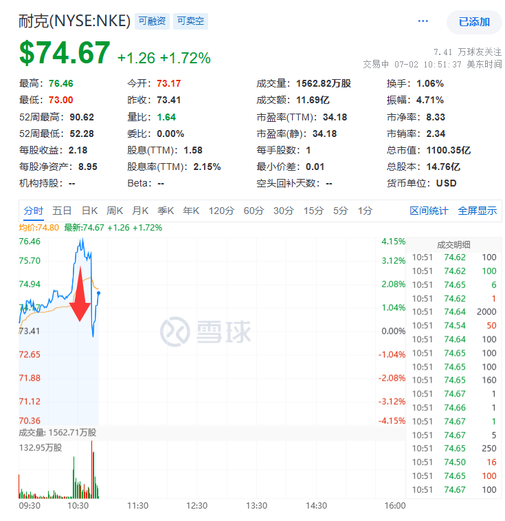 耐克转跌,特朗普称对越南关税起征点为20%,美国享受零关税