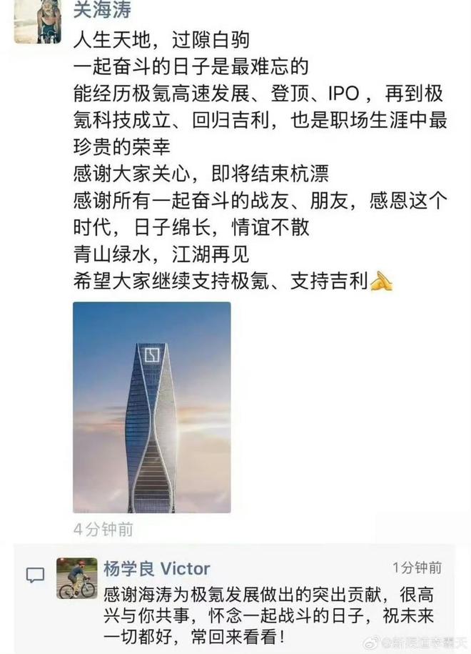 极氪CBO关海涛朋友圈官宣“告别”:江湖再见