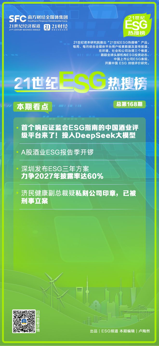 21世纪ESG热搜榜(第168期)丨首个响应证监会ESG指南的中国酒业评级平台来了;A股酒业ESG报告季开锣