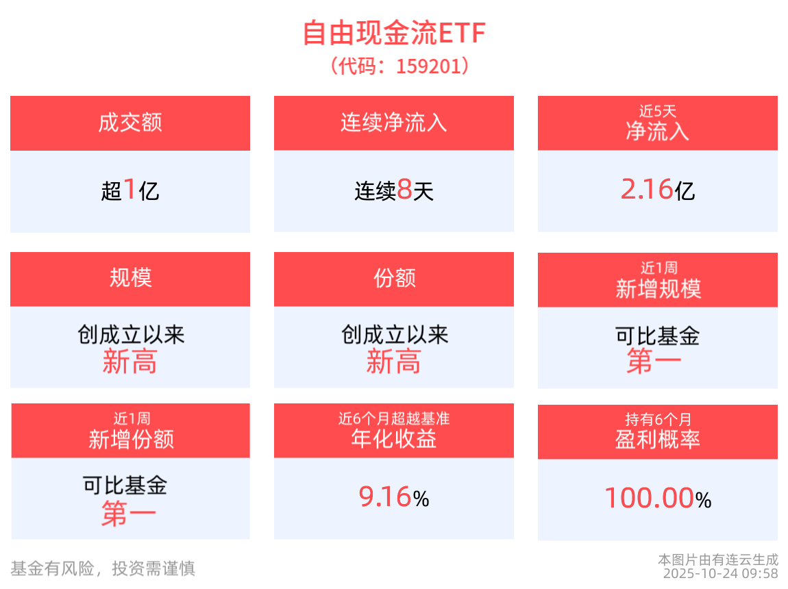 同类规模最大的自由现金流ETF(159201)连续8天净流入,合计“吸金”3.15亿元