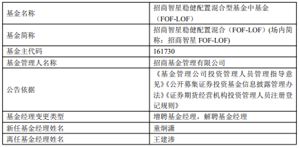 招商智星稳健配置混合FOF-LOF增聘童炯潇 王建渗离任