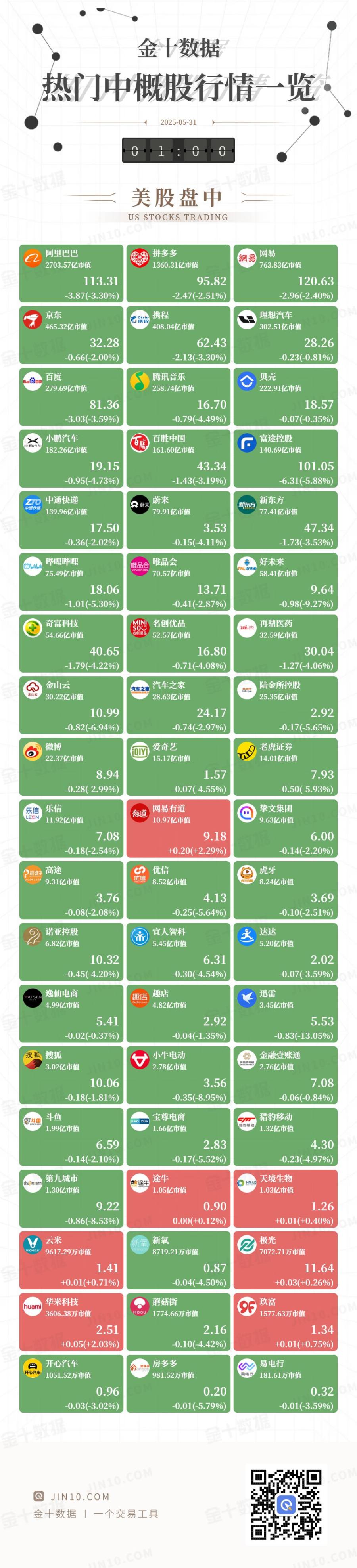 金十图示:2025年05月30日(周五)热门中概股行情一览(美股盘中)