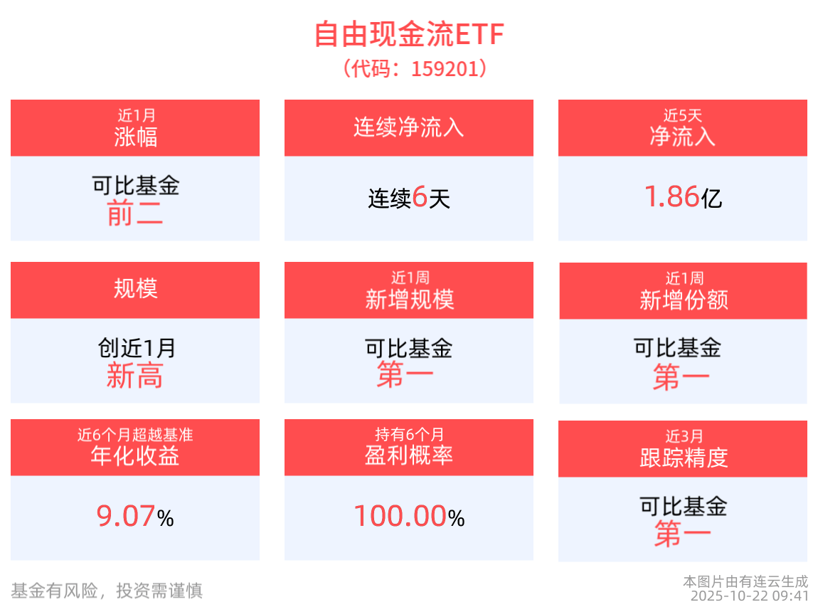 自由现金流ETF(159201)近6天获得连续资金净流入,合计“吸金”2.09亿元