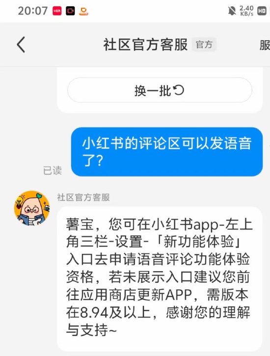 小红书评论区可发语音了?官方回应:8.94及以上版本可申请体验