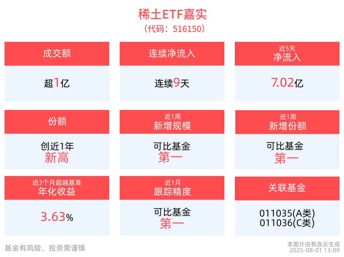 近9天获得连续资金净流入,稀土ETF嘉实(516150)最新份额创成立以来新高!