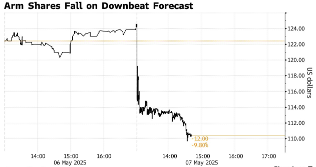 盘后大跌!Arm(ARM.US)Q1业绩指引失望 凸显芯片行业放缓担忧