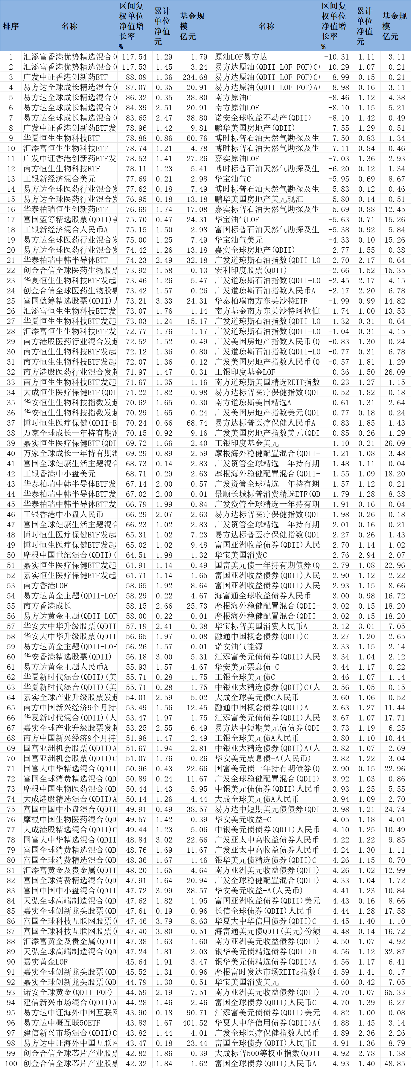 中国经济网北京11月10日讯(记者 何潇)今年前10月,全市场650只(各类份额分开计算,下同)有可比业绩的QDII基金中,共有618只基金净值上 涨,占比95.1%;有32只基金净值下跌。 三季报显示,汇添富香港优势精选混合A/C坚守投资主线、沿着以下方向布局:1)创新药:产品有全球竞争力和成长空间的pharma和biotech;2)进口 替代率低,壁垒高的优秀设备耗材龙头。 跌幅榜上,前10月垫底QDII基金的主要为原油及油气类及房地产产品。此外,一些跟踪标普500医疗保健等权重指数的QDII基金也表现欠佳。 2025年前10月QDII基金涨跌幅前100名 年初以来,创新药板块回暖,相关个股普涨,重仓该类个股的基金也取得了不错的收益率。同花顺数据显示,前10月汇添富香港优势精选混合C、汇添 富香港优势精选混合A分别以117.54%、117.53%的收益率领涨QDII基金。 截至三季度末,汇添富香港优势精选混合A/C前十大重仓股分别为映恩生物、科伦博泰生、信达生物、三生制药、康诺亚、石药集团、恒瑞医药、诺诚 健华、荣昌生物、复宏汉霖。该基金的现任基金经理为张韡。张韡曾任东方证券医药助理研究员,汇添富基金医药 ...