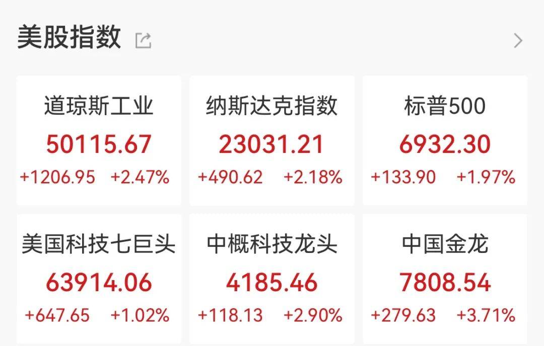深夜,全线大涨!道指飙升850点创新高,半导体大爆发,英伟达狂飙7%!中概股、黄金集体拉升