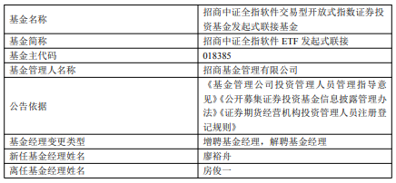 招商中证全指软件ETF发起式联接增聘廖裕舟