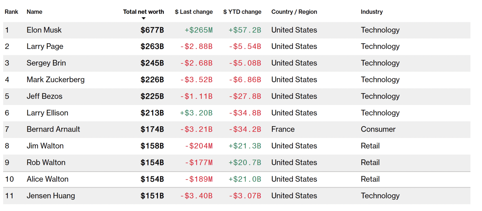全球富豪榜前十生变:黄仁勋跌出,沃尔玛三兄妹挤进
