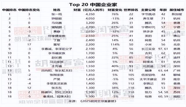Group 1 - The core point of the article is the release of the "2025 Hurun Global Rich List," highlighting the wealth growth of Chinese entrepreneurs, particularly Lei Jun of Xiaomi, who saw a significant increase in his wealth and ranking [1][2]. - Lei Jun's wealth increased by 114% to 220 billion RMB, making him the fastest-growing entrepreneur in China this year, ranking 8th nationally and 50th globally, a rise of 91 places [2]. - The list includes several entrepreneurs from Hubei, with notable mentions such as Chen Dongsheng of Taikang Life and others, indicating a strong representation from the region [2]. Group 2 - Zhang Yiming, the founder of ByteDance, has become the richest person in China, surpassing Zhong Shanshan, with a wealth of 435 billion RMB, an increase of 76% due to the valuation surge from AI business prospects [3]. - The article mentions the rise of AI-related wealth, with individuals like Liang Wenfeng of DeepSeek and Sam Altman of OpenAI making their debut on the Hurun Global Rich List [3].