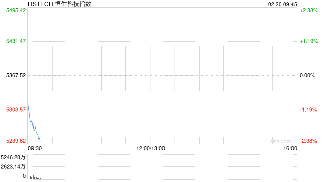 马年开市首日港股三大指数持续下挫,恒生科技指数跌超2%,百度跌超5%