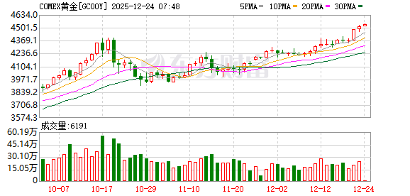Group 1: U.S. Stock Market Performance - The U.S. stock market saw a collective rise, with all three major indices recording a four-day winning streak as of December 23, with the S&P 500 reaching a new closing high [1] - Major tech stocks mostly increased, with Nvidia rising over 3%, Google and Amazon up more than 1%, while Tesla and Intel experienced slight declines [1] - The Nasdaq Golden Dragon Index, which tracks Chinese stocks, fell by 0.58%, with notable declines in companies like Xiaoma Zhixing and NIO [1] Group 2: Precious Metals Market - International gold and silver prices continued to surge, with spot gold breaking the $4500 per ounce mark for the first time during the Asian trading session on December 24 [2] - COMEX gold futures rose by 1.02% to $4515 per ounce, while silver futures increased by 4.44% to $71.61 per ounce [2] - Platinum prices surged over 7%, reaching a historical high of $2277.05 per ounce, and palladium also saw a significant increase of 7% [2] Group 3: Federal Reserve and Interest Rates - U.S. Treasury Secretary Mnuchin supports re-evaluating the Federal Reserve's inflation target after it stabilizes at 2%, suggesting a potential range adjustment [4] - The White House's economic advisor Hassett noted that the U.S. is lagging behind global trends in interest rate cuts [5] - President Trump expressed his desire for the next Federal Reserve chair to lower rates when the market performs well, emphasizing the importance of market stability [5]