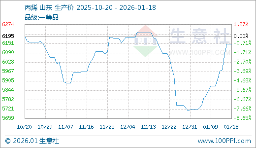 01月18日丙烯6147.67元/吨 5天上涨3.02%