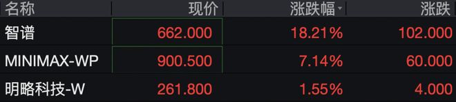 大模型双雄走强 智谱涨近10% MINIMAX-WP涨超7%