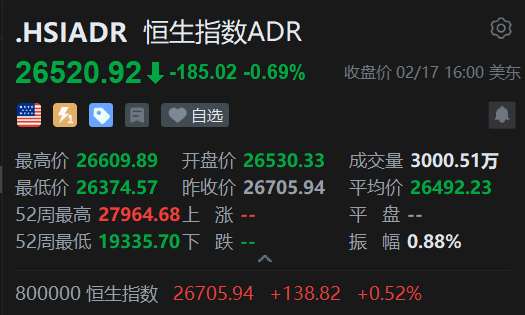 智通ADR统计 | 2月18日