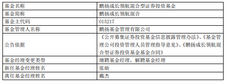鹏扬成长领航混合增聘张勋 戴杰离任