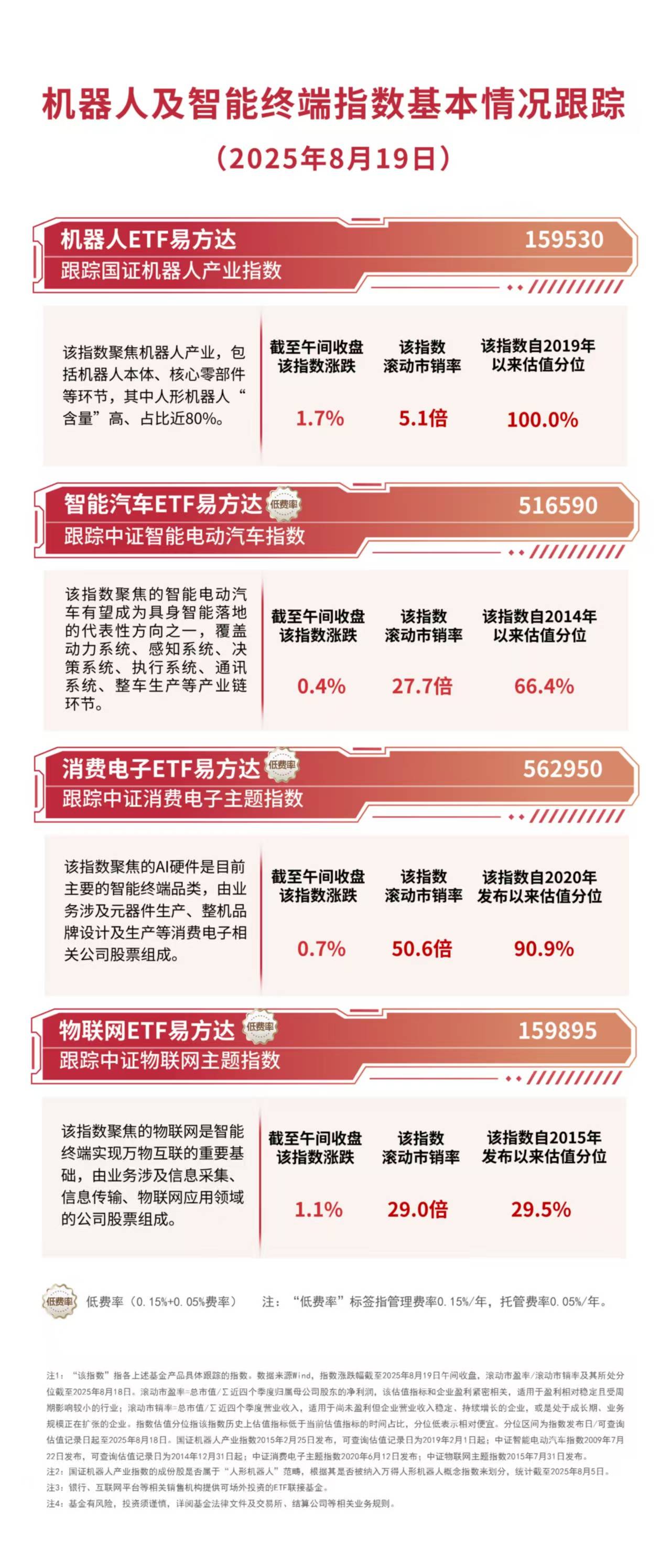 截至午间收盘,国证机器人产业指数上涨1.7%,中证智能电动汽车指数上涨0.4%,中证消费电子主题指数上涨0.7%,中证物联网主题指数上涨1.1%,机器 人ETF易方达(159530)半日成交额超4亿元,净申购达1.47亿份。 | 截至午间收盘 | 该指数 该指数自202 | | --- | --- | | 该指数涨跌 | 滚动市销率 发布以来估值: | | 0.7% | 50.6倍 90.9% | 每日经济新闻 ...