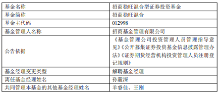 孙麓深离任招商稳旺混合