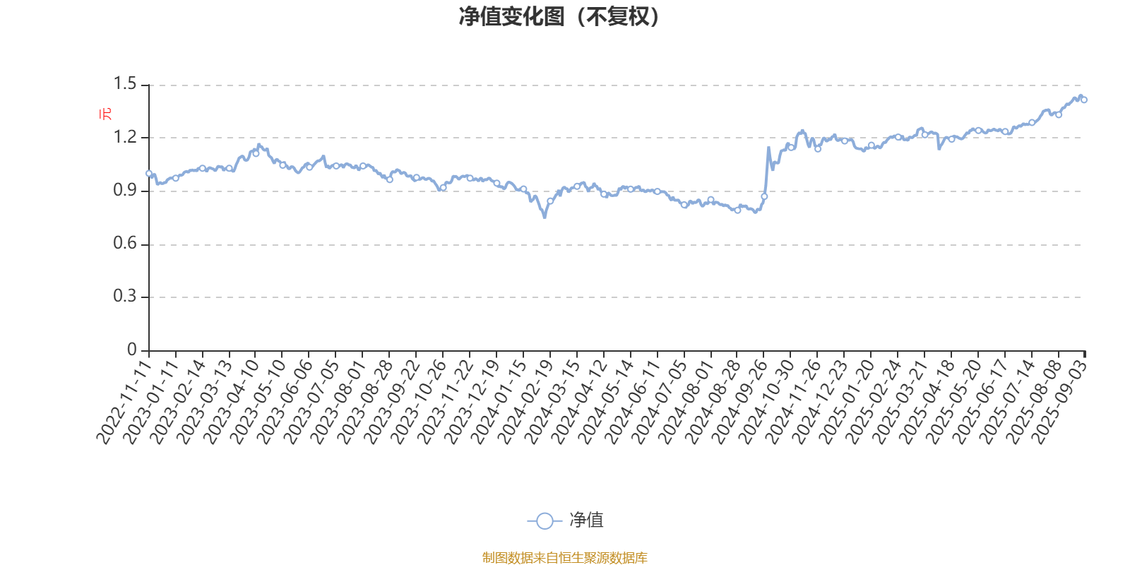 Group 1 - The core viewpoint of the news is that the Dachen Hongli Preferred One-Year Holding Mixed Fund A (013914) reported a profit of 1.4203 million yuan in the first half of 2025, with a net value growth rate of 7.28% [2][6] - As of September 3, the fund's unit net value was 1.415 yuan, and the fund manager, Li Yu, has managed four funds with positive returns over the past year [2][6] - The fund's performance in the past year shows a significant growth rate, with the highest being 96.14% for Dachen Jinglu Flexible Allocation Mixed A and the lowest at 33.12% for Dachen Hengxiang Mixed A [2][6] Group 2 - The fund's weighted average price-to-earnings ratio (TTM) is approximately 18.54 times, which is lower than the industry average of 25.34 times [11] - The weighted average price-to-book ratio (LF) is about 2.88 times, compared to the industry average of 2.34 times [11] - The weighted average price-to-sales ratio (TTM) stands at 2.5 times, while the industry average is 2.09 times [11] Group 3 - The fund's weighted revenue growth rate (TTM) for the first half of 2025 is 0.11%, and the weighted net profit growth rate (TTM) is 0.13% [18] - The fund's weighted annualized return on equity is 0.16% [18] - The fund's Sharpe ratio since inception is 0.6223, indicating a reasonable risk-adjusted return [26] Group 4 - As of June 30, 2025, the fund had a total of 1,066 holders, with a total of 17.2498 million shares held [36] - The fund's maximum drawdown since inception is 36.26%, with the largest quarterly drawdown occurring in Q1 2024 at 21.58% [29] - The fund's turnover rate in the last six months is approximately 75.29%, which is consistently lower than the industry average [39] Group 5 - The fund has a high concentration of holdings, with the top ten stocks including Kweichow Moutai, CATL, New China Life Insurance, Mindray Medical, and others [41]