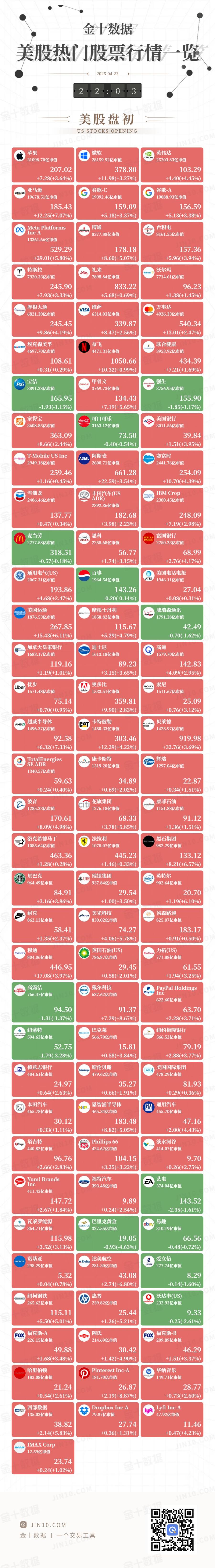 金十图示:2025年04月23日(周三)美股热门股票行情一览(美股盘初)