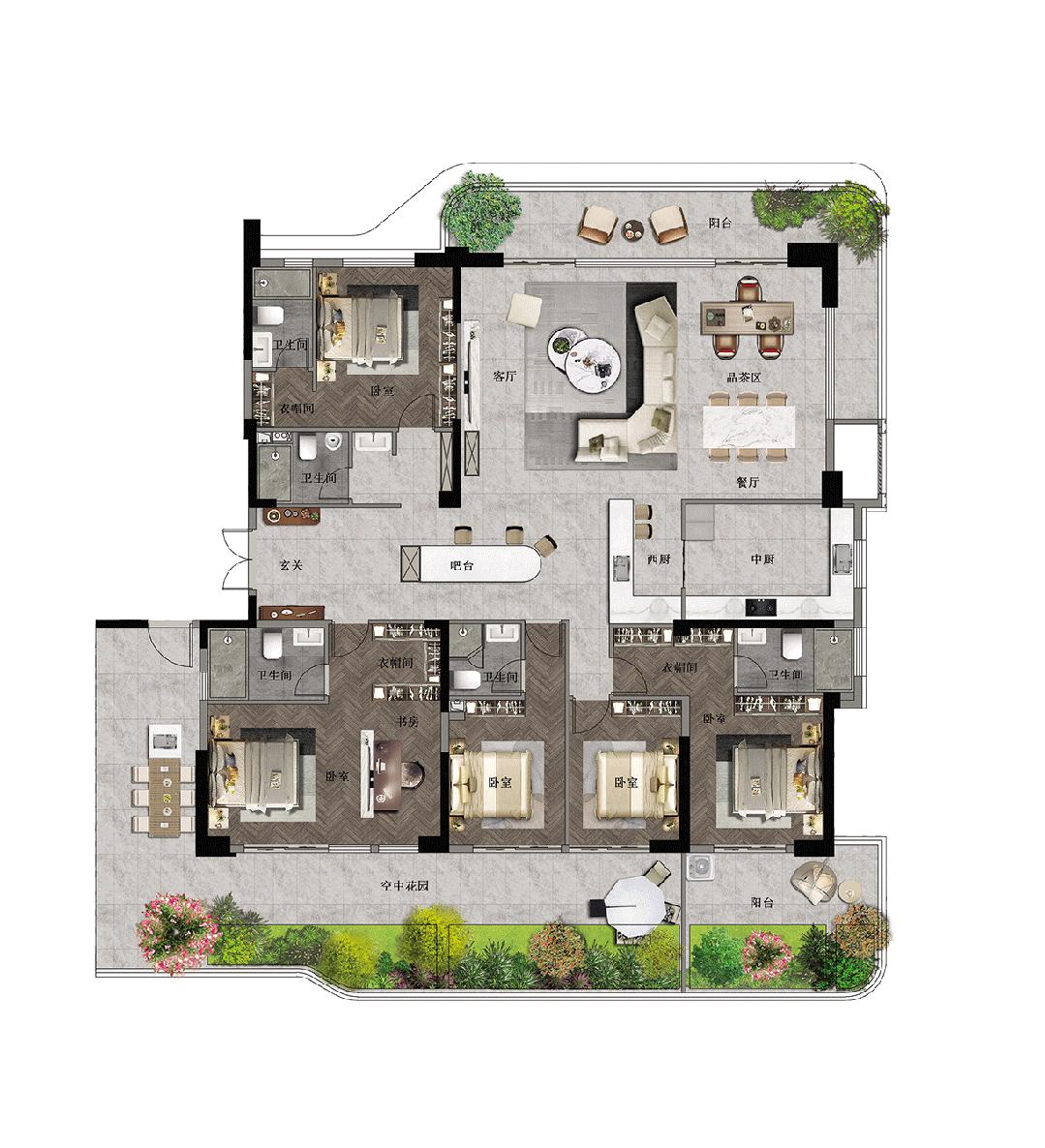 2025 年 是公认的 "豪宅大年"。 这一年, 住宅新规 落地、 各地计容规则松绑、 房企产品体系迭新 , 住宅产品迎来了一场激烈的品质竞赛。 尤其是豪宅,相信大家都注意到,如今的豪宅早已不是地段和面积段的概念,而是全方位高品质生活方式的比拼。 当我们热议当前的好房子,探讨住宅进化趋势时,一定不能绕过对豪宅的研究。因为,作为品质产品的典型代表、当前最热门的产品赛道,豪宅的迭代更 新速度走在全品类的最前面。 看懂2025年的豪宅,也就看懂了住宅的升级方向。 1 空中院墅 从去年底以来,各地纷纷优化计容规则,露台、飘窗等空间不计容或半计容,这为户型创新打开了空间。 其中,以"平层墅院化"为特征的第四代住宅在各地兴起,大平层融合了别墅特有的庭院、露台等功能空间,既拥有大平层的尺度及视野,又同时享受别墅 般"有天有地"的庭院生活。 带大露台,是四大宅最主要的特点。 露台作为室内空间的延伸,可以延展生活场景,营造半户外的生活体验。目前,最受欢迎的露台布局,是与客厅连 通,形成LDKBG一体化布局,引入自然和更丰富的生活场景。 亲自然设计,是最近两年住宅产品一大热门方向。 今年的豪宅设计,普遍强调通过弱化户内外边界,实 ...