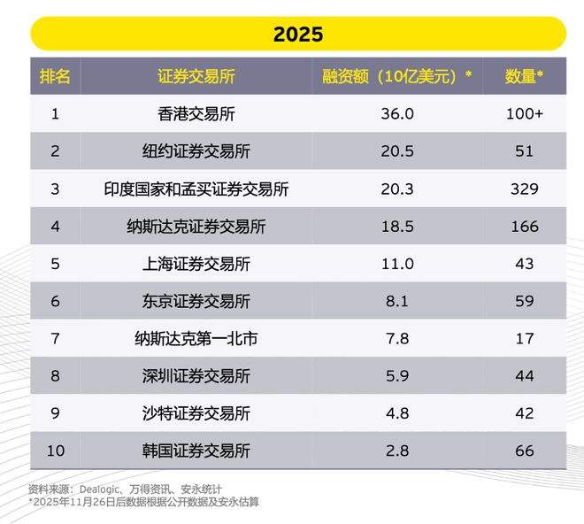 截至12月18日,港股已迎来102家企业上市,募集资金净额达2382亿港元,较去年同期大幅增长246%。 2025年,港股有望提前锁定"全球募资王"宝座。 安永预计,港交所全年融资额有望冲击360亿美元,成为2025年全球融资规模最高的交易所。从结构上 看,"新经济"成为贯穿全年的主线,工业工程、黄金及贵金属、汽车、药品及生物科技等新兴行业合计 募集资金超过1300亿港元。 然而,热潮背后亦有隐忧。目前,港交所积压的上市申请已超过300宗,形成明显的"审核堰塞湖",申 报文件质量下滑的问题已引发监管关注。市场担忧,密集的IPO发行可能对二级市场流动性产生分流压 力。 展望2026年,市场普遍认为机遇与挑战并存。由于2025年IPO活动高度活跃,明年或将迎来一波禁售期 满后的解禁潮。不过,结合宏观环境向好、解禁不等于立即减持等特点综合分析,业内预计相关风险整 体可控。 提前锁定"募资王"宝座 火爆的IPO,也让港股市场经历一场深刻的"新陈代谢"。据第一财经不完全统计,年内共有27家公司完 成私有化退市,4家主动撤回上市,另有30家被联交所取消上市地位,形成"有进有退"的动态平衡。 | | 2025 | | | ...