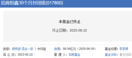 招商恒鑫30个月封闭债券基金清盘