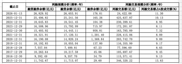 Group 1 - The core viewpoint of the articles highlights the increasing demand for margin financing in the stock market, leading to some brokerages exhausting their financing quotas [1][3][6] - As of January 14, the margin financing balance in the A-share market exceeded 2.6 trillion yuan, indicating a significant rise in investor activity [1][6] - Several brokerages have announced plans to raise their margin financing limits, with some aiming to set the limit at three times their net capital [3][4] Group 2 - The number of new margin financing accounts reached 1.542 million in 2025, a 52.9% increase from 1.0085 million in 2024, marking the third consecutive year of growth [4] - On January 14, the financing margin ratio was raised from 80% to 100% for new financing contracts, a move that has garnered attention from market participants [2][5] - Despite the high margin financing balance, the overall leverage level remains below that of 2015, with the margin financing balance accounting for only 2.59% of the A-share market's circulating market value [6]