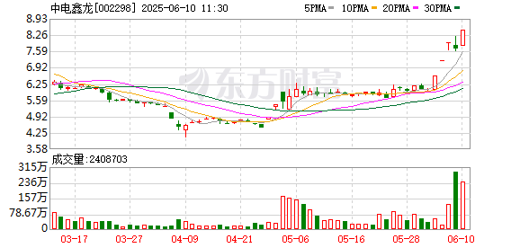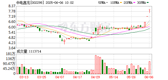 中电鑫龙盘中涨停,已连收3个涨停板,截至9:34,该股报7.95元,换手率15.94%,成交量1.04亿股,成 交金额8.24亿元,涨停板封单金额为4.28亿元。连续涨停期间,该股累计上涨33.17%,累计换手率为 28.13%。最新A股总市值达58.84亿元,A股流通市值51.97亿元。 | 日期 | 当日涨跌幅(%) | 换手率(%) | 主力资金净流入(万元) | | --- | --- | --- | --- | | 2025.06.05 | 10.05 | 3.75 | 2259.86 | | 2025.06.04 | 10.05 | 8.44 | 16058.93 | | 2025.06.03 | -0.33 | 5.98 | -750.83 | | 2025.05.30 | -3.07 | 8.89 | -1383.01 | | 2025.05.29 | 3.87 | 11.85 | 854.05 | | 2025.05.28 | -1.82 | 7.08 | -1385.65 | | 2025.05.27 | 0.50 | 11.09 | -1709.07 | | 2025.05.26 | 6 ...