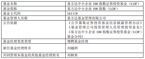 易方达中小企业100指数LOF增聘刘越洲