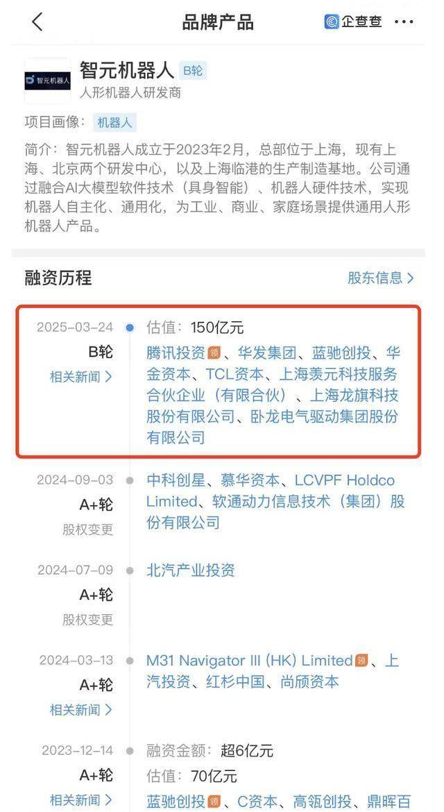 腾讯出手!华为“天才少年”创办的智元机器人获新一轮融资,估值150亿