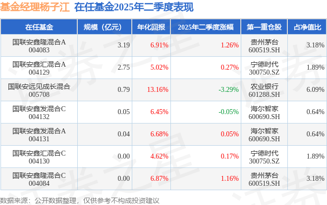 杨子江2025年二季度表现,国联安鑫隆混合A基金季度涨幅1.26%