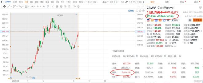 华尔街最近炙手可热的IPO妖股双雄,迎来财报检验。 昨晚,"稳定币第一股"Circle公布的首份成绩单大超预期。 营收爆表 亏损超预期 作为英伟达支持的AI概念"新贵"(持股7%),CoreWeaveQ2营收还是惊人的。 财报显示,公司Q2营收为12.13亿美元,同比大增206.75%,高于市场预期的10.8亿美元,一季度同比 增长420%。 二季度,稀释后每股收益(EPS)为-0.6美元,同比亏损收窄约63%;但减亏步伐不及华尔街预期,分 析师预期为-0.52美元。 二季度,净亏损为2.91亿美元,同比收窄10%,一季度亏损同比扩大143%。 二季度,调整后营业利润约2亿美元,同比增长134%,一季度同比增长约550%。 公司的调整后EBITDA表现同样出色,达到7.53亿美元,利润率为62%,是去年同期水平的三倍。 周二盘后,有"英伟达亲儿子"之称的CoreWeave 业绩同样也爆表;不过因亏损超预期、指引喜忧参半, 导致其盘后股价大跌。 在财报公布后,原本收涨超6%的CoreWeave盘后暴跌超10%。 不过回顾来看,自CoreWeave上市四个多月来,公司股价已累涨超280%,目前总市值为713.97 ...