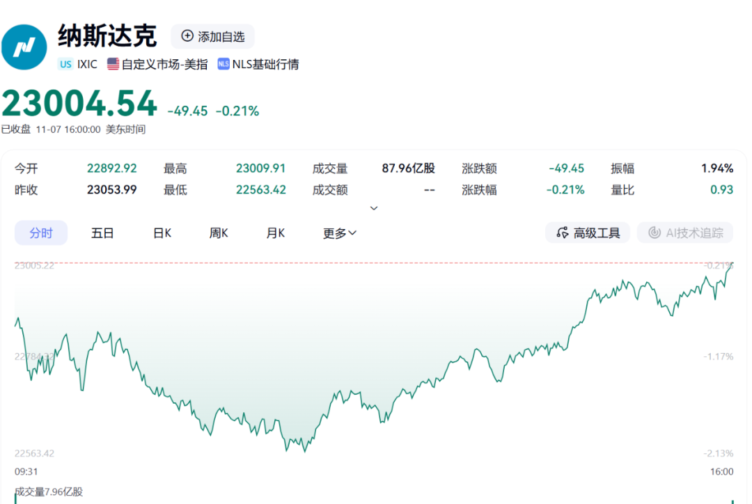 Core Viewpoint - The U.S. stock market experienced a "V-shaped reversal" as signs of a resolution to the government shutdown emerged, with the S&P 500 and Dow Jones Industrial Average turning positive towards the end of trading [1]. Market Performance - As of the market close, the Nasdaq Composite fell by 0.21%, with a weekly decline of 3.04%. The S&P 500 rose by 0.13%, with a weekly decline of 1.63%. The Dow Jones increased by 0.16%, with a weekly decline of 1.21% [2]. Individual Stock Movements - Nvidia, a leading AI trading stock, saw a nearly 5% drop during the day but managed to close slightly up. Microsoft missed the opportunity to turn positive, marking its longest losing streak since November 2011, with a total market value loss exceeding $330 billion [8]. - Tesla's stock dropped over 3%, resulting in a market value loss of $54.5 billion (approximately 388.2 billion RMB) [10]. - Major Chinese stocks listed in the U.S. mostly declined, with the Nasdaq Golden Dragon China Index falling by 0.95% and a weekly decline of 2.62%. Xpeng Motors dropped over 6%, while other companies like Tencent Music and NIO saw declines exceeding 4% [12]. Economic Indicators - The U.S. consumer confidence index fell to its lowest level since June 2022, dropping from 53.6 to 50.3, influenced by concerns over the government shutdown and high inflation [18]. - Concerns about rising unemployment have increased, with 71% of respondents expecting a rise in the unemployment rate over the next year, more than double the proportion from the previous year [19].