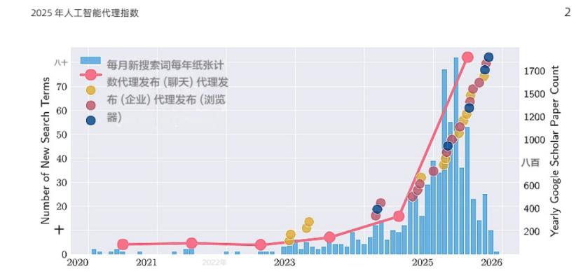 Claude Code、ChatGPT Agent、Manus,再加上一堆大厂的企业级工作流平台,动不动就喊"替代打工人""创造万亿美 元价值"。麦肯锡的报告也在推波助澜:62% 的企业正在试水 Agent。 但把热闹先放一边,真正的问题是——在真实工作场景里,Agent 到底走到哪一步了? 最近,MIT、哈佛、斯坦福等机构的研究团队发布了一份《2025 AI Agent Index》。 这帮学者干了一件很有价值的事: 进入2026 年,Agent 彻底火了。 他们把市面上最具代表性的30 个代理系统逐一拆开来看了一遍,并设计了45 个维度,仔细扒了扒这些产品的技术细 节、部署情况、设计架构、工具使用和安全机制等信息,得出了当下Agent最硬核的3个真相。 透过这部分报告,我们就能更清晰地了解当下Agent发展的真实情况。 01 产品形态收拢在这3个方向 大多数代理产品集中在2024–2025 年发布。 (蓝色柱状图代表与代理型人工智能产品相关的谷歌新增搜索词,红线则代表谷歌学术中包含"人工智能代理"或"代理 型人工智能"关键词的论文发表数量) 从产品形态看,AI代理基本收拢在了三个方向: 聊天式代理(12个 ...
