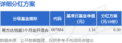 基金分红:易方达恒盛3个月定开混合基金11月25日分红