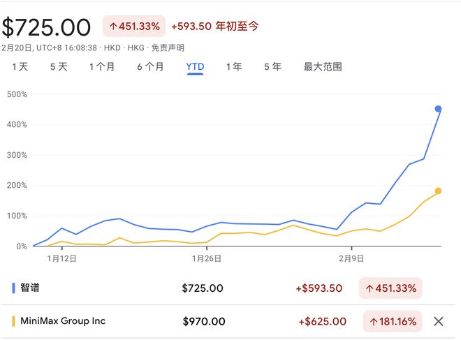Core Insights - The two AI companies, Zhipu and MiniMax, have seen significant stock price increases, with Zhipu rising over 42% on the first trading day of the Year of the Horse, and MiniMax increasing over 14% on the same day, leading to market capitalizations exceeding 300 billion HKD [1][2][7] - Both companies have experienced substantial growth since their IPOs, with Zhipu's stock price increasing by 523% and MiniMax's by 487.88% within a month of their listings [1][7] - Despite their high valuations, both companies are currently operating at a loss, with a price-to-sales ratio (PS) exceeding 700, significantly higher than OpenAI's 65 [2][17] Company Performance - Zhipu's stock closed at 725 HKD per share, with a market capitalization surpassing 323.2 billion HKD, while MiniMax closed at 970 HKD per share, reaching a market cap of 304.2 billion HKD [2][11] - Zhipu's cumulative losses from 2022 to mid-2025 amount to approximately 6.238 billion CNY, while MiniMax reported a net loss of 512 million USD (around 3.605 billion CNY) for the first nine months of 2025 [17][20] Market Position - Zhipu and MiniMax's market capitalizations have surpassed those of major companies like Ctrip and Kuaishou, and are approaching the valuations of Pop Mart and Baidu [2][11] - The market's enthusiasm for these companies is attributed to their technological advancements and product breakthroughs, particularly in AI model development [12][19] Technological Advancements - Zhipu launched its flagship model GLM-5, which has shown over a 20% performance improvement compared to its predecessor, while MiniMax introduced M2.5, designed for full-stack programming development [12][13] - Both models have achieved significant performance metrics in industry benchmarks, with MiniMax M2.5 being the most called model in a recent week, reaching 3.07 trillion tokens [14][16] Pricing Strategy - Following the launch of GLM-5, Zhipu raised the prices of its coding plans by 30% in China and over 100% internationally, indicating strong demand for its services [12][19] - MiniMax's pricing for token usage is significantly lower than that of competitors like Claude Opus 4.6, making it an attractive option for users [14][15] Future Outlook - The market is betting on the future potential of these companies, as the demand for AI capabilities continues to grow, particularly in areas requiring high token consumption for complex tasks [19][20] - Analysts suggest that the transition of AI from simple tasks to more complex operations will drive up token consumption, positioning these companies favorably in the evolving AI landscape [19]