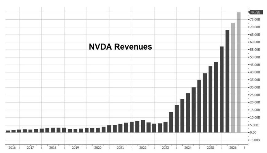 来源:市场资讯 来源:XG云数智 英伟达今日公布了第四财季业绩,表现超预期。在截至1 月 25 日的第四财季,英伟达营收681 亿美元, 市场预期为656.84 亿美元,上年同期为 393.31 亿美元,同比增长73%。净利润几乎翻倍,从去年同期 的221 亿美元(每股 0.89 美元)增至 430 亿美元(每股 1.76 美元)。 Q: 感谢接受提问。你之前提到目前已经能看到2027财年的增长,贵公司的购买承诺在某种程度上也反 映了这种信心。但是Jensen,我很好奇,今年顶级云客户的云资本支出接近7000亿美元,许多投资者担 心明年很难继续保持这一增长水平,而且对于部分客户来说,他们产生现金流的能力正在受到压缩。尽 管你对公司的路线图和购买承诺非常有信心,但如果客户的资本支出不再增长,英伟达能否继续找到增 长动力? A: 我对他们现金流的增长充满信心,原因很简单。我们现在已经看到了智能体AI(Agentic AI)的演 进,以及智能体在全球各地企业中的实用价值。因此,你会看到市场对计算产生了令人难以置信的需 求。在这个人工智能的新世界里,算力就等于收入。没有算力,就没有办法生成Token;没有Token, ...