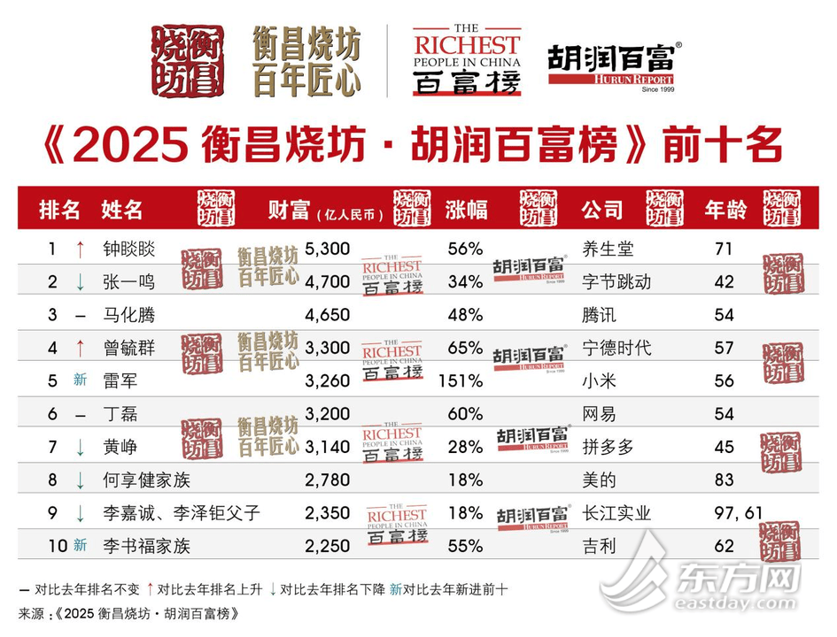 钟睒睒,再次登顶!雷军,时隔十年闯进前五!2025胡润百富榜揭晓→