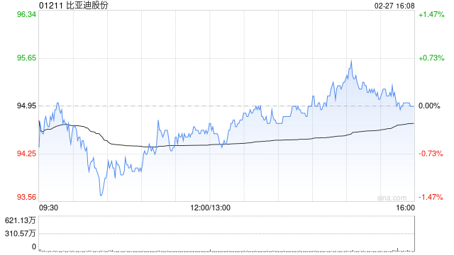 比亚迪股份2月新能源汽车销量约19.02万辆 同比增长15.27%